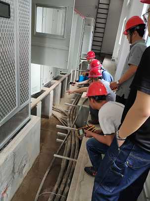 公司檢查組來到項目部后,首先聽取了項目部作的項目運行情況的總體匯報,內(nèi)容包括項目目標管理責任書簽訂、項目策劃、進度、物資設備、勞務隊伍、技術、質(zhì)量、安全、合同、成本、資金管理以及“質(zhì)量月”活動的進展情況等。接著檢查組來到了施工現(xiàn)場對配電房變壓器、高低壓配電柜及成套設備、室外電纜分支箱、電纜敷設等施工安裝情況的進行了檢查,并提出了不足,給予規(guī)范要求。