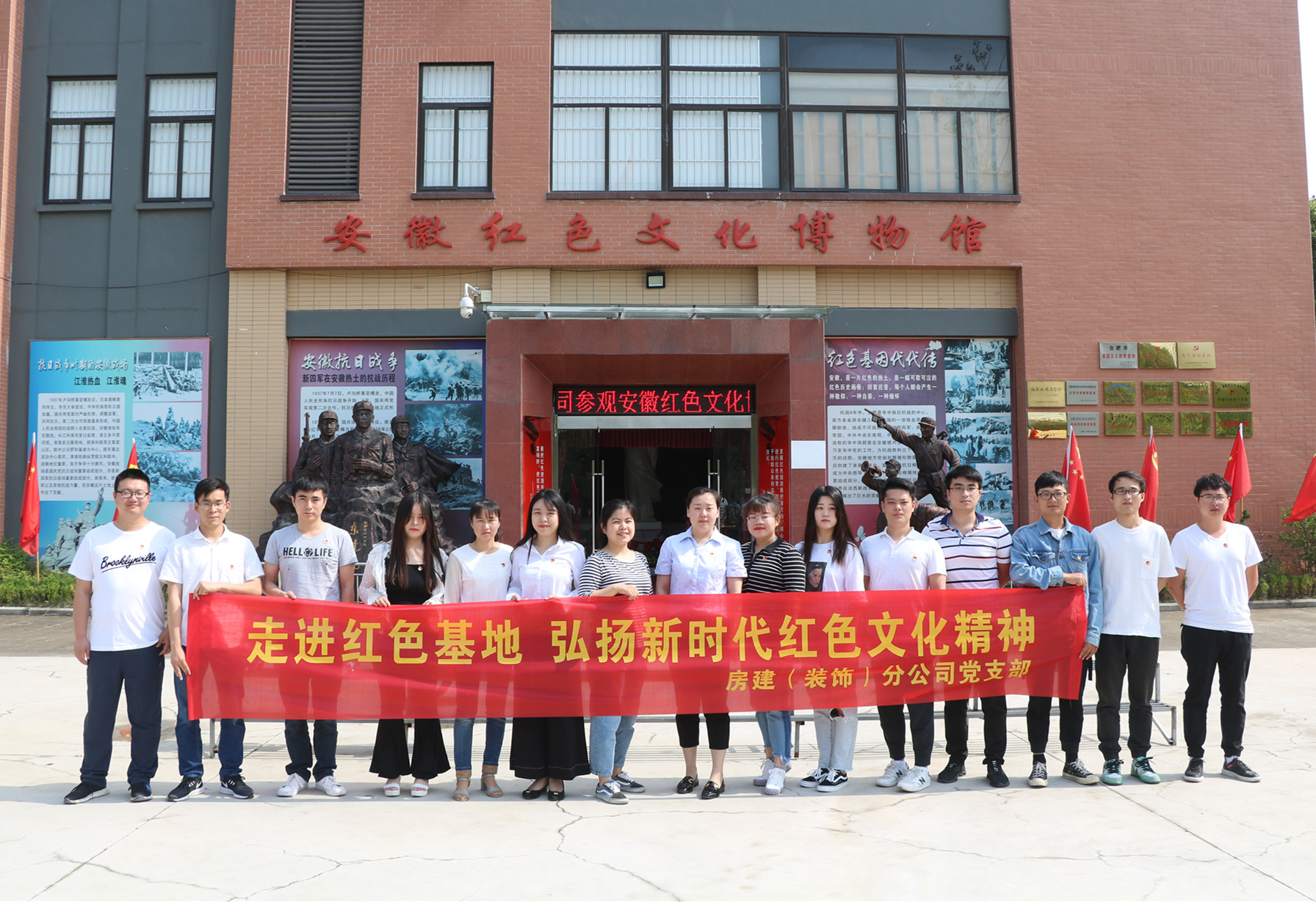 為進(jìn)一步提升分公司黨支部全體黨員的綜合素質(zhì),強(qiáng)化黨組織的凝聚力、戰(zhàn)斗力和號(hào)召力,激勵(lì)所屬黨員繼承和發(fā)揚(yáng)黨的優(yōu)良傳統(tǒng)和作風(fēng),更好地完成本職工作。5月31日上午,房建(裝飾)分公司黨支部在安徽紅色文化博物館開展了“走進(jìn)紅色基地 弘揚(yáng)新時(shí)代紅色文化精神”的主題黨日活動(dòng),支部全體黨員、入黨積極分子、部分團(tuán)員也參加了本次活動(dòng)。