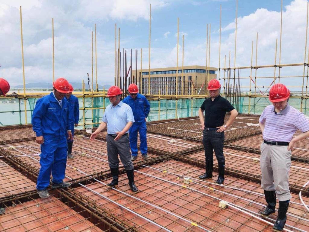 胡六中一行對項目基本情況簡單了解后,在現場幾位主要管理人員的陪同下冒著酷暑深入現場了解施工情況。每到一處都仔細詢問,對現場施工過程中的安全、質量、進度等存在的問題當場指出,并強調注意細節,切不可疏忽大意。