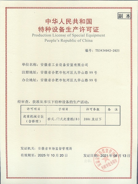 特種設(shè)備安裝改造維修許可證(起重機械)