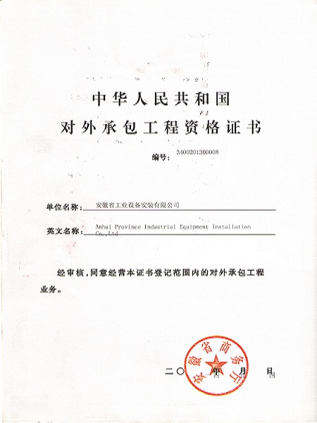 對外承包工程資格證書