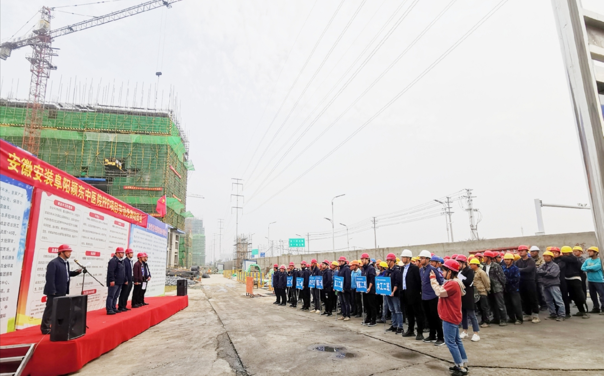 為確保年度各項(xiàng)目目標(biāo)任務(wù)順利完成,貫徹落實(shí)集團(tuán)公司開(kāi)展“搶進(jìn)度、保工期、穩(wěn)預(yù)期、促提升”為主題勞動(dòng)競(jìng)賽活動(dòng)精神,2019年10月11日上午,安徽安裝召開(kāi)阜陽(yáng)潁東區(qū)中醫(yī)院PPP項(xiàng)目“大干四季度”勞動(dòng)競(jìng)賽動(dòng)員大會(huì)。公司副總經(jīng)理高飛,紀(jì)委書記、工會(huì)主席李寬旭,總工程師吳繼成,公司相關(guān)部門負(fù)責(zé)人、項(xiàng)目管理人員和施工班組共120多人參加了競(jìng)賽動(dòng)員會(huì)。