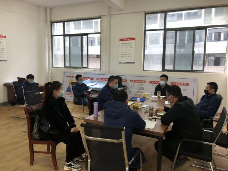 趙永峰強調,復工就是搶工,工期就是效益。針對項目工期緊、任務重,項目部要重點做好以下工作:一要持續抓好疫情防控各項舉措落地落實,確保疫情防控萬無一失;二要嚴格按照“一責兩案”要求,壓緊壓實責任,結合實際精心制定復工復產方案預案;三要加強項目管控力度,聚焦工期材料、質量全等關鍵因素,搶抓工期進度,樹立品牌形象,創造經濟效益;四要加強團隊建設,項目部必須凝心聚力、發揮優勢,立足企業積極向好的發展前景、方向與定位,積極打造一支“拿得出、打得贏”的項目團隊。