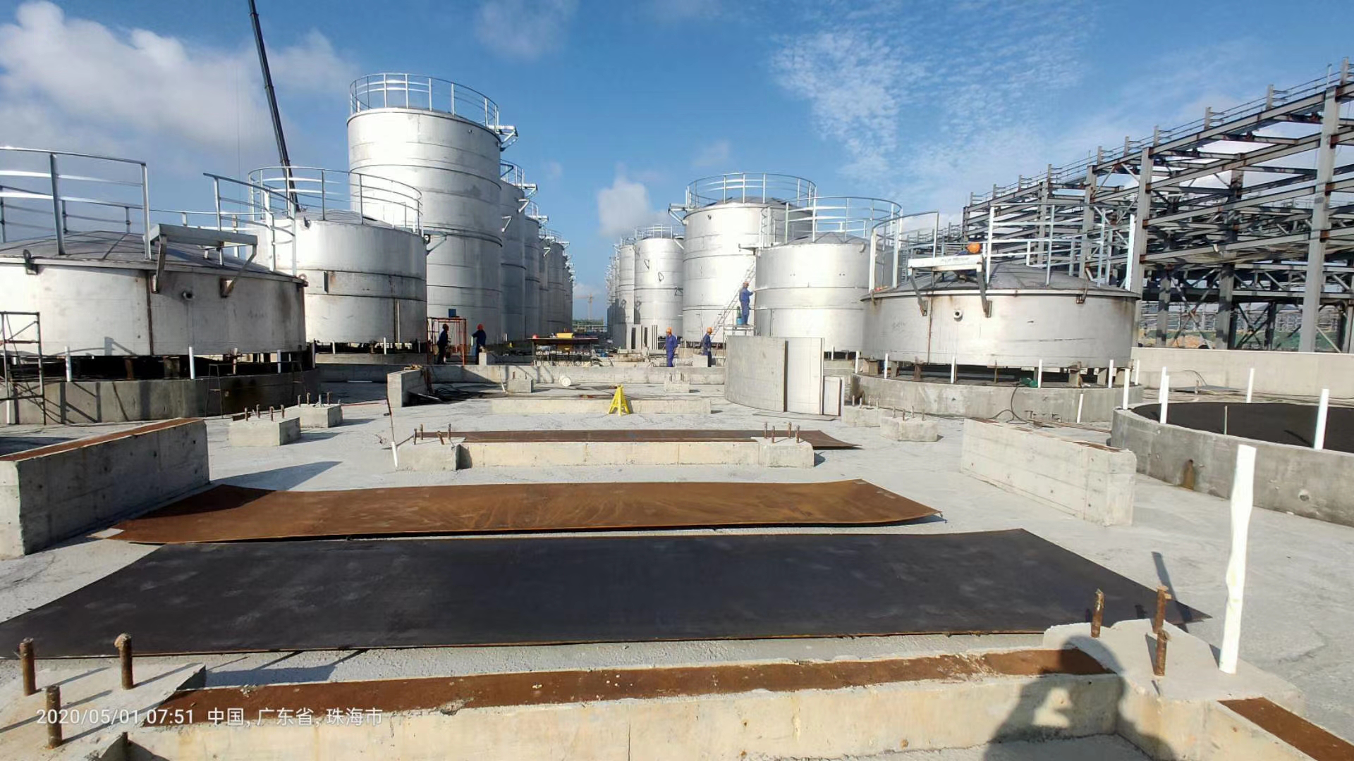 烈日下的工地上,機器轟鳴、人聲鼎沸,腳手架上,焊花四閃,車輛塔吊穿梭在項目現場,大型儲物罐及管廊鋼結構框架已初具規模,珠海利隆項目部現場呈現出井然有序的繁忙景象。