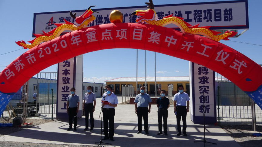 2020年5月28日,烏蘇市2020年重點項目集中開工儀式在烏蘇市供水改擴建調(diào)節(jié)蓄水池工程項目部召開。塔城地區(qū)地委委員阿依丁·托留汗,烏蘇市政協(xié)黨組書記王永安,烏蘇市委常委、常務(wù)副市長陳斌,塔城地區(qū)水利局、國土資源局等相關(guān)部門領(lǐng)導(dǎo)及項目各參建單位參加開工儀式,開工儀式由陳斌主持。