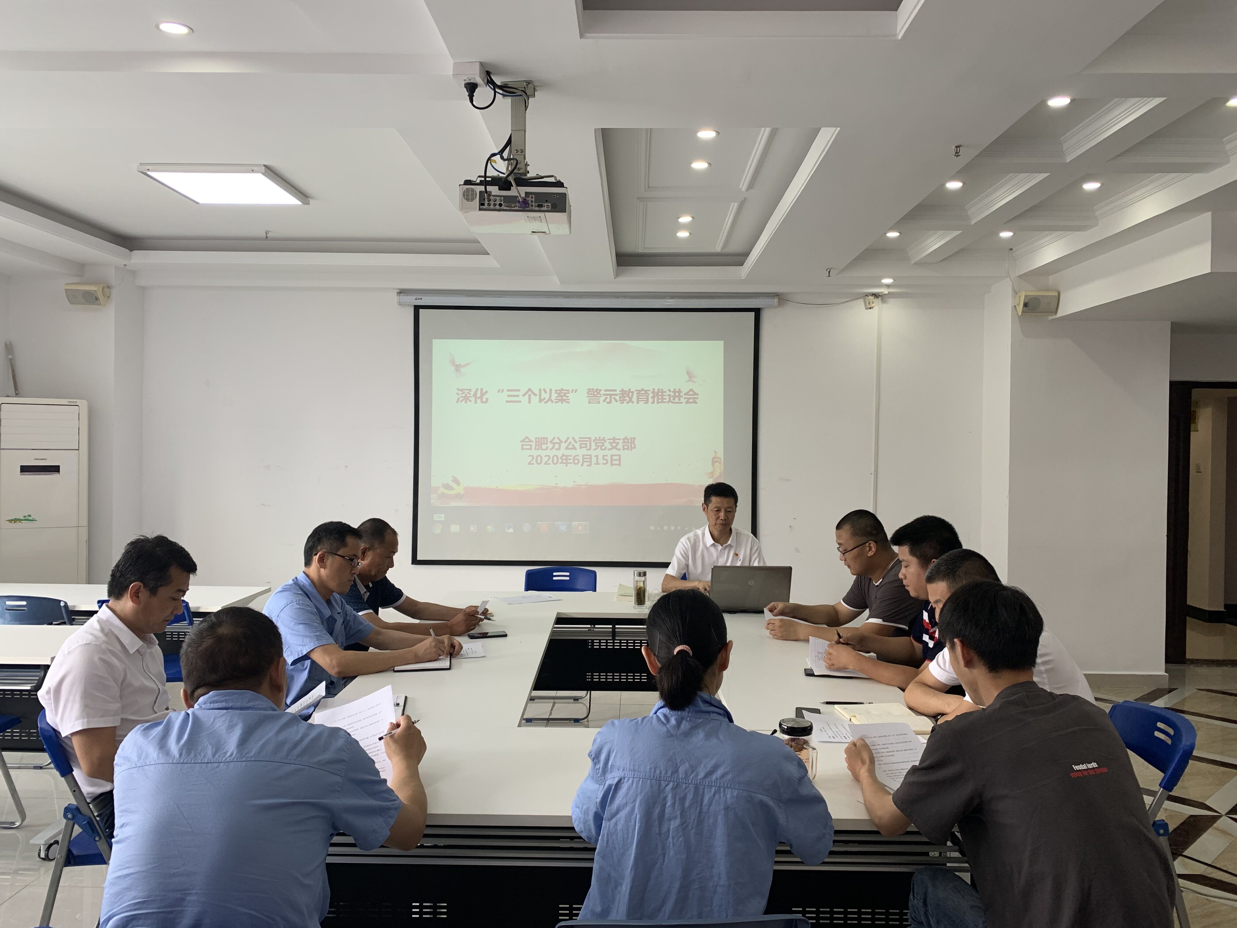 6月15日下午,合肥分公司黨支部召開深化“三個以案”警示教育推進會,黨支部書記胡迎東主持會議。分公司領導班子、機關全體黨員參會,項目部黨員以視頻會議形式同步參加。