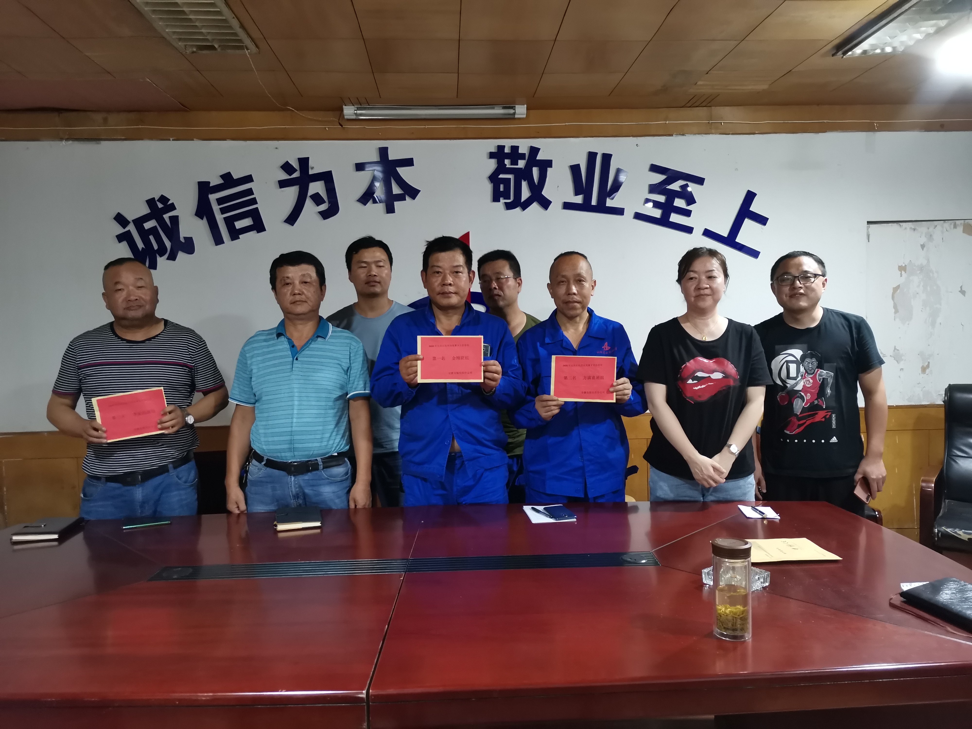 8月20日,在每周的安全生產例會上,分公司對經各項打分評選出的7月份勞動競賽班組前三名,頒發獎金,以示鼓勵,并鼓舞全體員工要營造好比學趕超,爭先創優的競賽氛圍,圓滿完成全年各項目標任務。