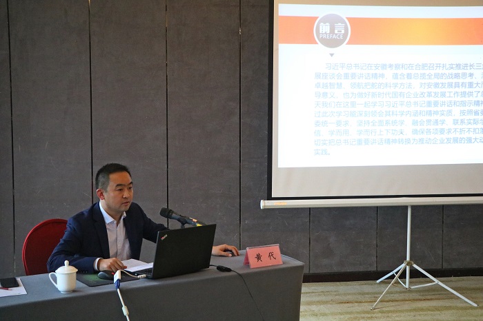 課上,黃代從四個(gè)方面宣傳貫徹了習(xí)近平總書(shū)記在安徽考察重要講話精神。一是提高政治站位,充分認(rèn)識(shí)習(xí)近平總書(shū)記考察安徽重要講話指示的重大意義。習(xí)近平總書(shū)記考察安徽重要講話指示精辟論述了我省當(dāng)前和未來(lái)發(fā)展的一系列方向性、根本性問(wèn)題,在安徽發(fā)展史上具有極其重大的里程碑意義,習(xí)近平總書(shū)記專程視察中國(guó)寶武馬鋼集團(tuán)時(shí)發(fā)表的重要講話,也為我們做好國(guó)企工作提供了思想武器、指明了前進(jìn)方向、注入了強(qiáng)大動(dòng)力。全體黨員領(lǐng)導(dǎo)干部要按照省委、省國(guó)資委統(tǒng)一要求,堅(jiān)持全面系統(tǒng)學(xué)、融會(huì)貫通學(xué)、聯(lián)系實(shí)際學(xué),確保深刻領(lǐng)會(huì)重大意義。二是把握核心要義,深刻領(lǐng)會(huì)習(xí)近平總書(shū)記考察安徽重要講話指示的精神實(shí)質(zhì)。“兩個(gè)堅(jiān)持”“兩個(gè)更大”,是總書(shū)記講話的核心要義,深刻回答了“十四五”乃至今后一個(gè)時(shí)期安徽發(fā)展在黨和國(guó)家全局中應(yīng)該承擔(dān)的使命、肩負(fù)的任務(wù),將安徽的發(fā)展層次、工作要求提升到前所未有的高度,是當(dāng)前和今后一個(gè)時(shí)期引領(lǐng)安徽發(fā)展的總方針、總遵循。三是聚焦重點(diǎn)任務(wù),切實(shí)答好加快美好安徽建設(shè)和集團(tuán)高質(zhì)量發(fā)展的必答題。全體黨員干部職工要深刻領(lǐng)悟全省領(lǐng)導(dǎo)干部“12個(gè)必答題”和安徽建工集團(tuán)“10個(gè)必答題”,緊扣目標(biāo)要求和各項(xiàng)任務(wù),謀深謀實(shí)貫徹落實(shí)的具體思路、促進(jìn)發(fā)展的實(shí)際舉措、推動(dòng)工作的保障機(jī)制。四是營(yíng)造濃厚氛圍,全面掀起學(xué)習(xí)貫徹習(xí)近平總書(shū)記考察安徽重要講話熱潮。安徽安裝公司要以“大學(xué)習(xí)”“大宣傳”“大調(diào)研”“大落實(shí)”為抓手,確保對(duì)重要講話精神融會(huì)貫通、入腦入心、明晰思路、落地見(jiàn)效。