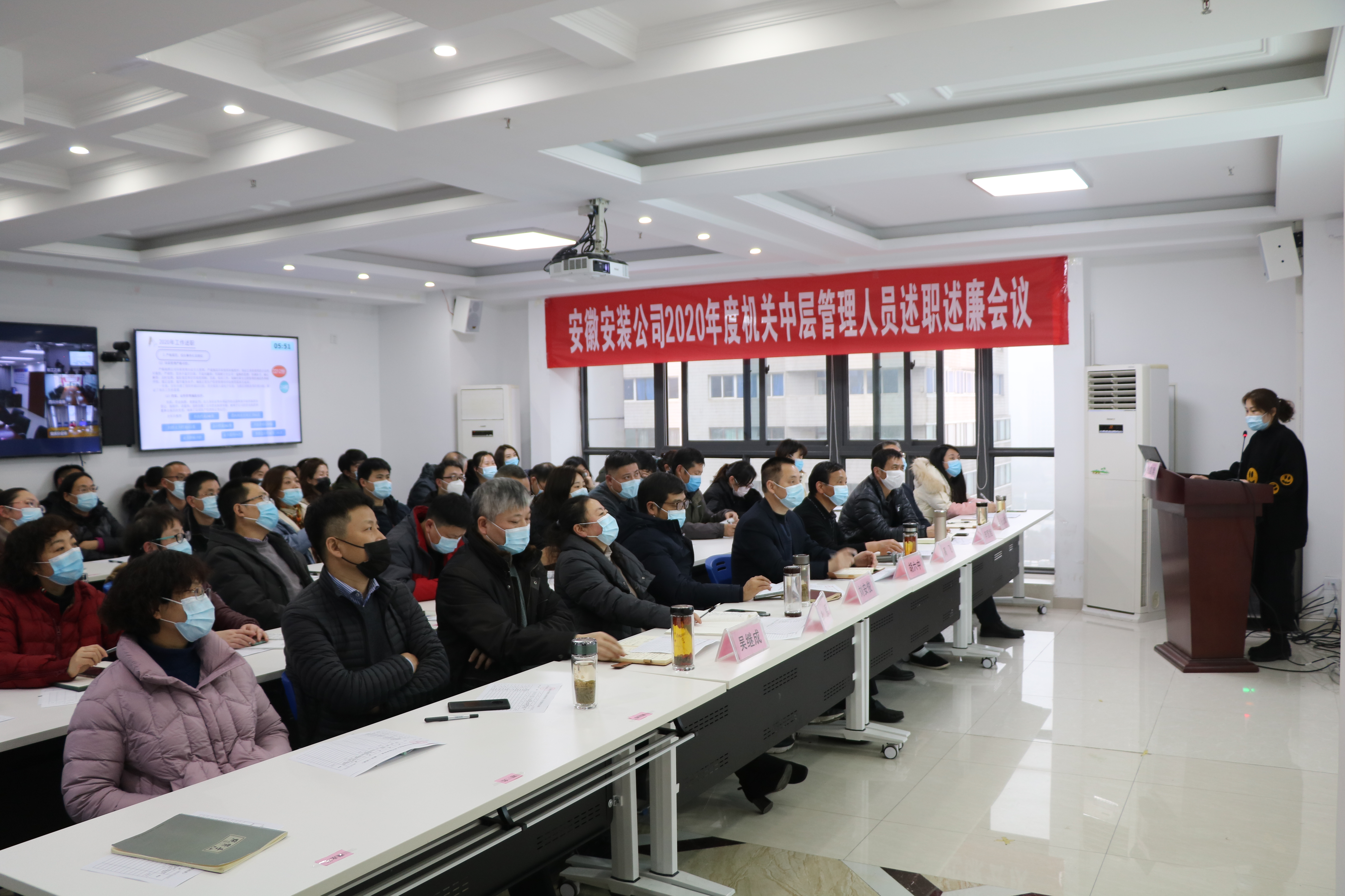 1月25日下午,安徽安裝公司召開2020年度機關中層管理人員述職述廉會議。公司領導班子成員、機關中層管理人員、分公司黨政負責人、機關部門員工代表共60余人參加會議,會議采取現場加視頻會議方式召開,公司黨委書記、董事長胡六中主持會議。