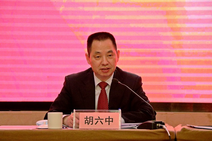黨委書記、董事長胡六中作題為《新起點新征程 新思想新作為 奮力開創安徽安裝“十四五”發展新局面》的講話