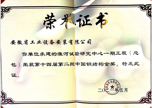 截至目前,該工程已榮獲安徽省鋼結(jié)構(gòu)工程優(yōu)質(zhì)工程獎“皖鋼杯”、省級技術(shù)成果鑒定1項、省級工法1項、企業(yè)級工法1項、1項發(fā)明專利已進入實質(zhì)性審查階段、2019年度省重大合理化建議1項、安徽省安全生產(chǎn)標(biāo)準(zhǔn)化示范工地、蚌埠市安全生產(chǎn)標(biāo)準(zhǔn)化示范工地、集團公司“黨員先鋒號”工程、“工人先鋒號”工程、“青年文明號”工程等獎項,根據(jù)公司創(chuàng)優(yōu)策劃,該工程還將繼續(xù)申報“安裝之星”、“黃山杯”等獎項。