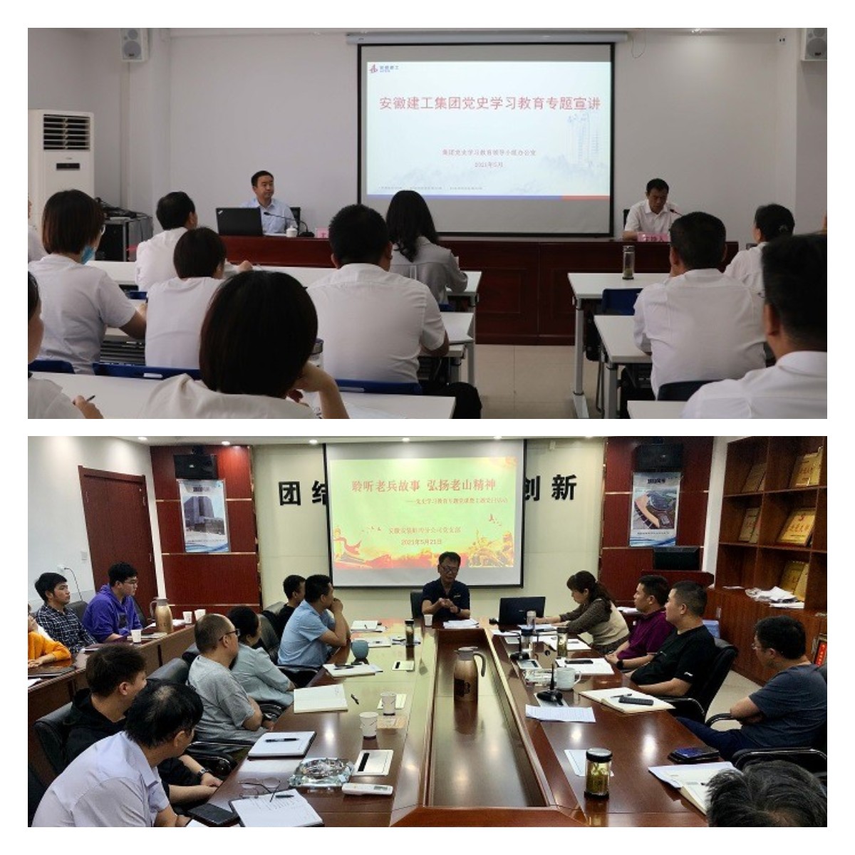 專題宣講課堂。5月27日下午,股份公司黨委委員、副總經(jīng)理黃代,帶領(lǐng)集團黨史學習教育第十七宣講組成員赴安徽安裝公司開展黨史學習教育專題宣講。公司領(lǐng)導(dǎo)班子成員分赴西安、阜陽、蚌埠、合肥等地區(qū)分公司及項目一線作黨史學習教育專題黨課報告。進一步將黨史學習“送學”到一線,確保習總書記在黨史學習教育動員大會上的講話精神落實到基層,確保公司自上而下扎實開展好黨史學習教育,將黨史學習教育的成果轉(zhuǎn)化為干事創(chuàng)業(yè)的強大動力。蚌埠分公司黨支部組織開展“聆聽老兵故事 弘揚老山精神”黨史學習教育專題黨課。邀請曾參加過對越自衛(wèi)反擊戰(zhàn)的退伍老兵為大家上了一堂別開生面的黨課,講述用鮮血和生命捍衛(wèi)國家領(lǐng)土和民族尊嚴的崢嶸歲月。