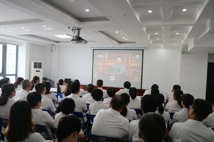 7月5日,公司黨委召開慶祝建黨100周年黨課報告暨表彰大會,公司黨委書記、董事長胡六中作了題為《風雨輝煌百年路 高歌奮進新征程》的黨課報告,公司中層管理人員及黨員干部職工等共90余人參加。