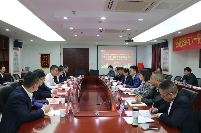 為深入開展貫徹落實全國國有企業黨的建設工作會議精神情況“回頭看”工作,持續夯實基層黨建工作基礎。11月5日上午,安徽安裝公司與中建八局第一建設有限公司安裝公司華中片區開展對標學習和黨建聯建共建活動,合肥分公司黨支部與八一安裝華中片區黨支部簽訂結對共建協議。