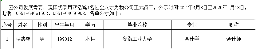 2021年擬錄用社會人才公示