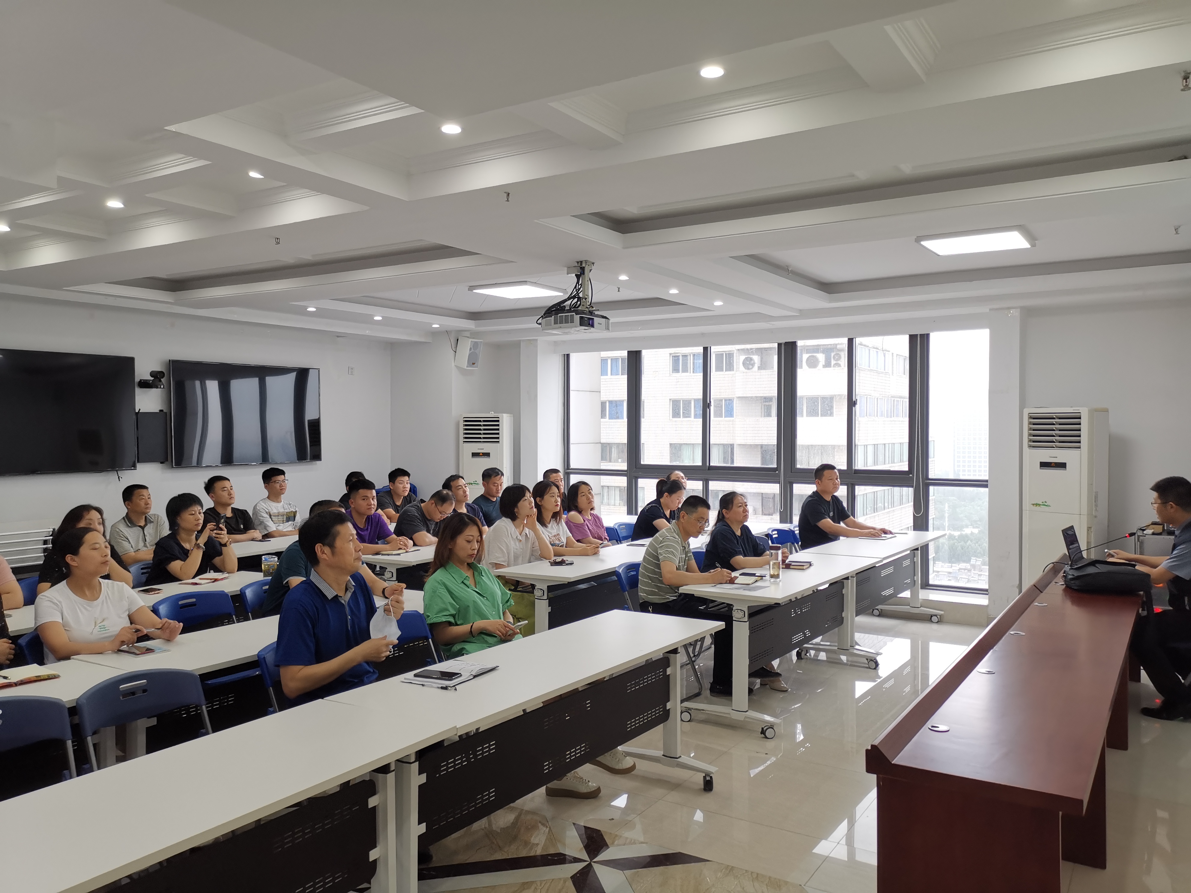 本次培訓邀請安全健康教育網王海濤老師為大家進行授課,老師結合豐富的健康教育知識,重點從四個方面介紹了常見職業病與慢性病的預防和改善,公共衛生常識及各種突發事故和突發疾病的自救互救,環境污染的危害及防護,倡導文明健康、綠色環保的生活方式。全面講解了安全職業健康的知識和自救互救的能力,課程內容深入淺出,得到在場參會人員的一致好評。