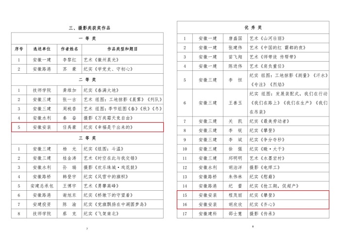 9月29日,集團公司工會通報了“翰墨寫初心 丹青頌黨恩”職工書畫攝影作品展評選結果,安徽安裝公司選送的五幅作品榜上有名。其中馬金鑫的油畫作品《支部建在項目上》榮獲繪畫類一等獎,任禹豪的攝影作品《幸福是干出來的》榮獲攝影類二等獎,化范寶的硬筆書法作品《沁園春·雪》和程茂麗的攝影作品《攀登》、胡欣欣的攝影作品《齊心》分別榮獲書法類優秀獎和攝影類優秀獎。