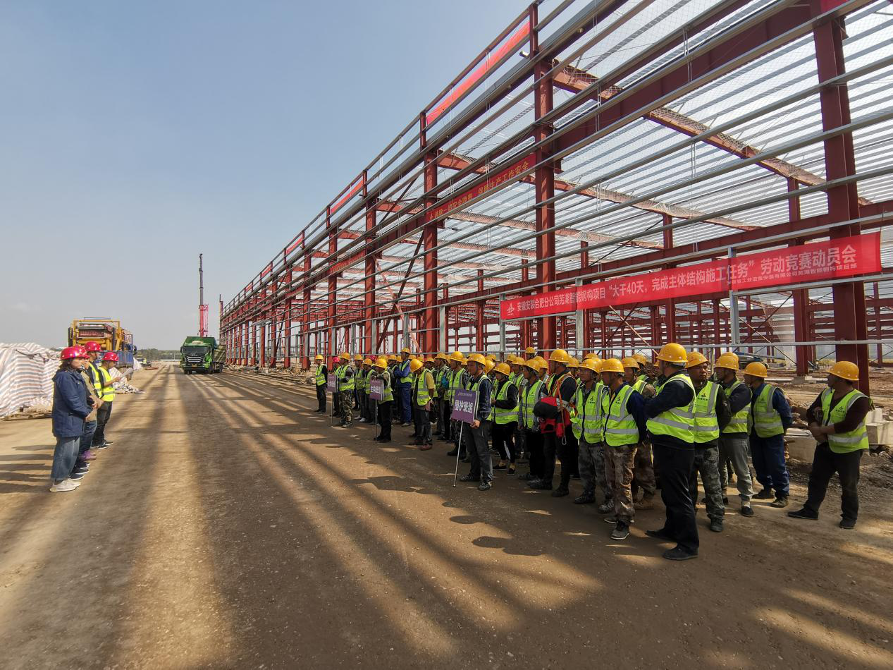 為貫徹落實集團公司“學黨史、保安康、搶工期、爭一流、沖千億”勞動競賽活動精神,10月29日上午,安徽安裝合肥分公司建工智能鋼構項目舉行“大干40天,完成主次構施工任務”勞動競賽動員會,公司紀委副書記、工會副主席王敏出席,合肥分公司副經理夏國祥、工會副主席杜瓊、項目管理人員及勞務班組參加會議。