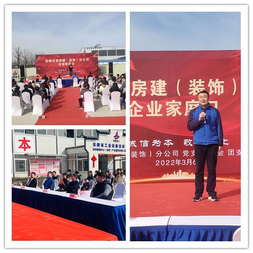 為進一步加強分公司與職工家屬間的溝通與交流,積極營造職工安心、家庭放心、事業順利的良好氛圍,3月6日,房建(裝飾)分公司在潤迅數據中心(合肥)產業園項目組織開展企業家屬日活動。公司紀委書記、工會主席李楊,副總經理趙伯平應邀出席活動,分公司經理許杰、黨支部書記王偉以及來自各基層項目的職工及其家屬參加活動。