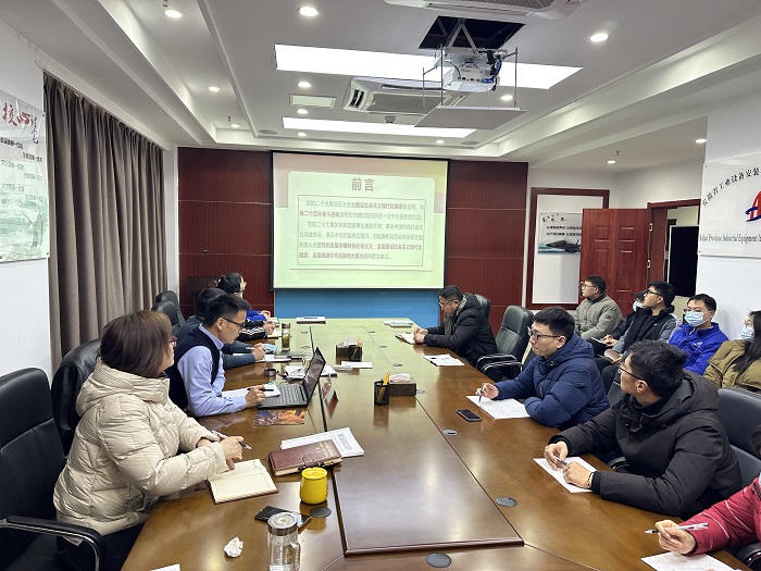 1月11日下午,安徽安裝公司黨委副書記、副總經(jīng)理周正平赴安慶分公司開展黨的二十大精神宣講,分公司全體員工參加宣講會。