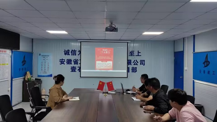 安徽安裝房建(裝飾)分公司壹石通項目部組織學習安徽共青團公眾號發(fā)表的關(guān)于黨的二十大的總結(jié)學習文件。