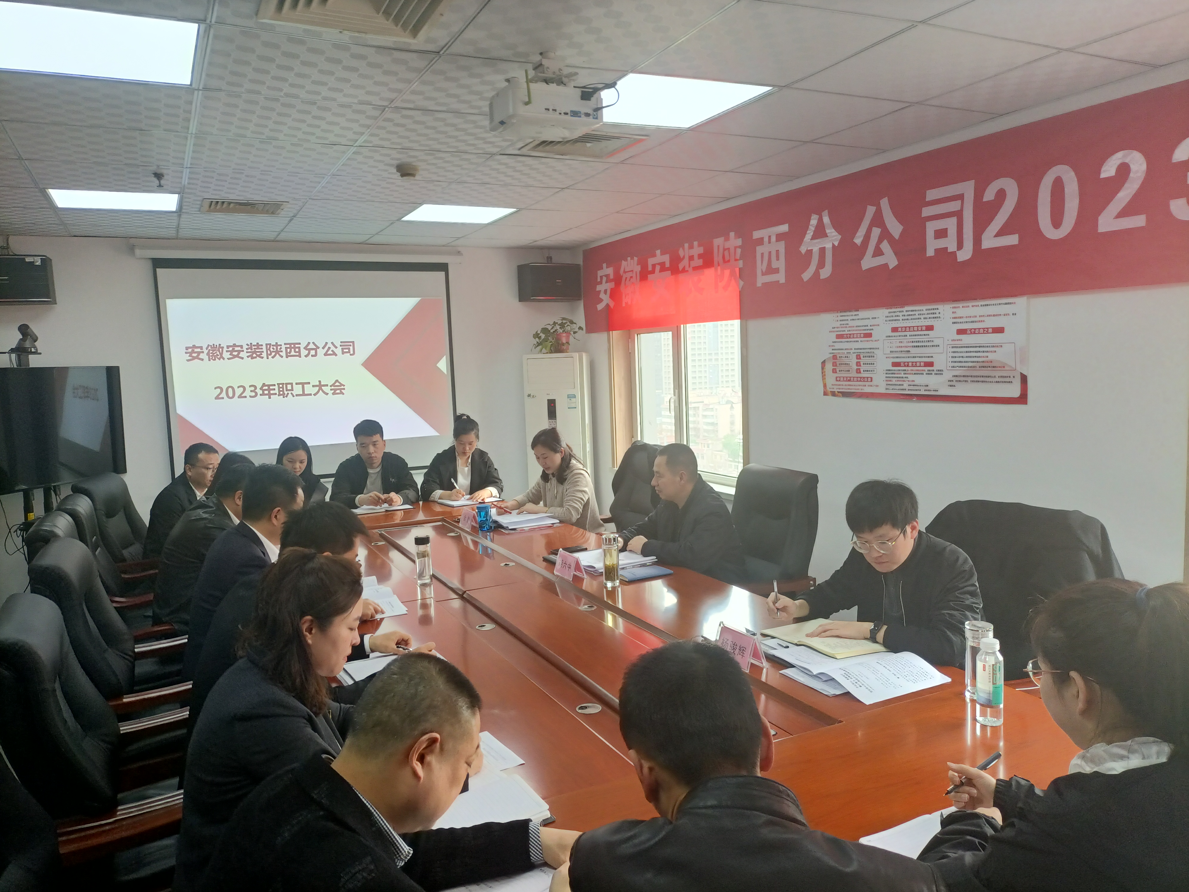 張寶深強調(diào),2023年陜西分公司將全面落實貫徹黨的二十大精神和集團、公司兩級職代會精神,在公司黨委的正確領(lǐng)導(dǎo)下,堅持“一主兩翼”經(jīng)營發(fā)展戰(zhàn)略,以“對內(nèi)做好服務(wù)、對外拓展市場”為定位,圍繞全年奮斗目標(biāo),從搶抓市場機遇、實現(xiàn)生產(chǎn)經(jīng)營突破,強化風(fēng)險防控、提高項目管理效能;堅持黨建引領(lǐng)、加強干部隊伍人才建設(shè);持續(xù)抓牢綜治維穩(wěn)安全等方面為抓手,努力完成全年各項目標(biāo)任務(wù)。