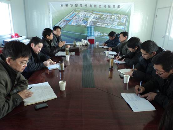王總一行首先聽取了安徽華塑項目部關(guān)于質(zhì)量、安全文明、施工進度、工作目標和下一步工作計劃的匯報。王總一行對安徽華塑項目部在開工短短兩個月內(nèi)取得的成績給予充分肯定。王總特別指出,在工期緊、任務(wù)重、困難大的情況下,項目部一定要思想上重視,制定科學合理的方案,與施工各方進行高效溝通,搶工期、保質(zhì)量、展風采,為后續(xù)工程的承接創(chuàng)造有利條件。