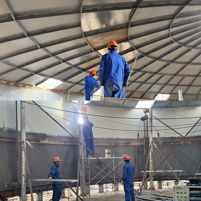 目前該項(xiàng)目ABR生化池主體結(jié)構(gòu)4米層池壁澆筑、池內(nèi)-1~0.6米層空心磚砌筑澆筑混凝土施工完成;調(diào)節(jié)罐安裝到第五帶板,電氣接地預(yù)埋施工完成;高密度沉淀池基礎(chǔ)筏板澆筑、污泥脫水框架基礎(chǔ)承臺(tái)混凝土澆筑完成,已順利完成總工程量的40%,實(shí)現(xiàn)了項(xiàng)目生產(chǎn)首季“開(kāi)門(mén)紅”。