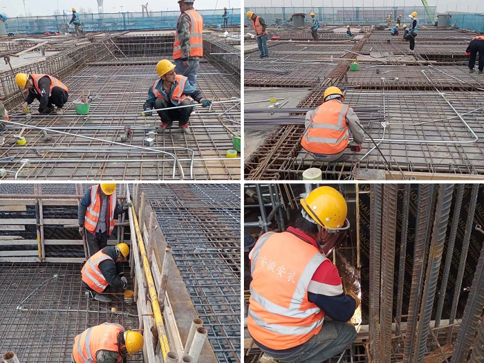 五一期間,安徽安裝合肥分公司新橋國際機場T2航站樓南北指廊機電安裝工程項目工地現場正如火如荼進行電氣管道預埋和防雷接地焊接工作,項目部精益求精,嚴格要求,緊抓安全質量不放松,穩步推進項目進度,為階段性施工任務的按時完成奠定了堅實基礎。