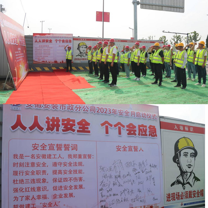 為弘揚安全發展理念,提高全員應急防患能力,6月1日上午,市政分公司2023年“安全生產月”活動啟動儀式在吳山神道改造及周邊綠化提升項目部舉行。分公司領導班子及全體員工參加本次活動,公司安全管理部副經理蔣秀正應邀參加。