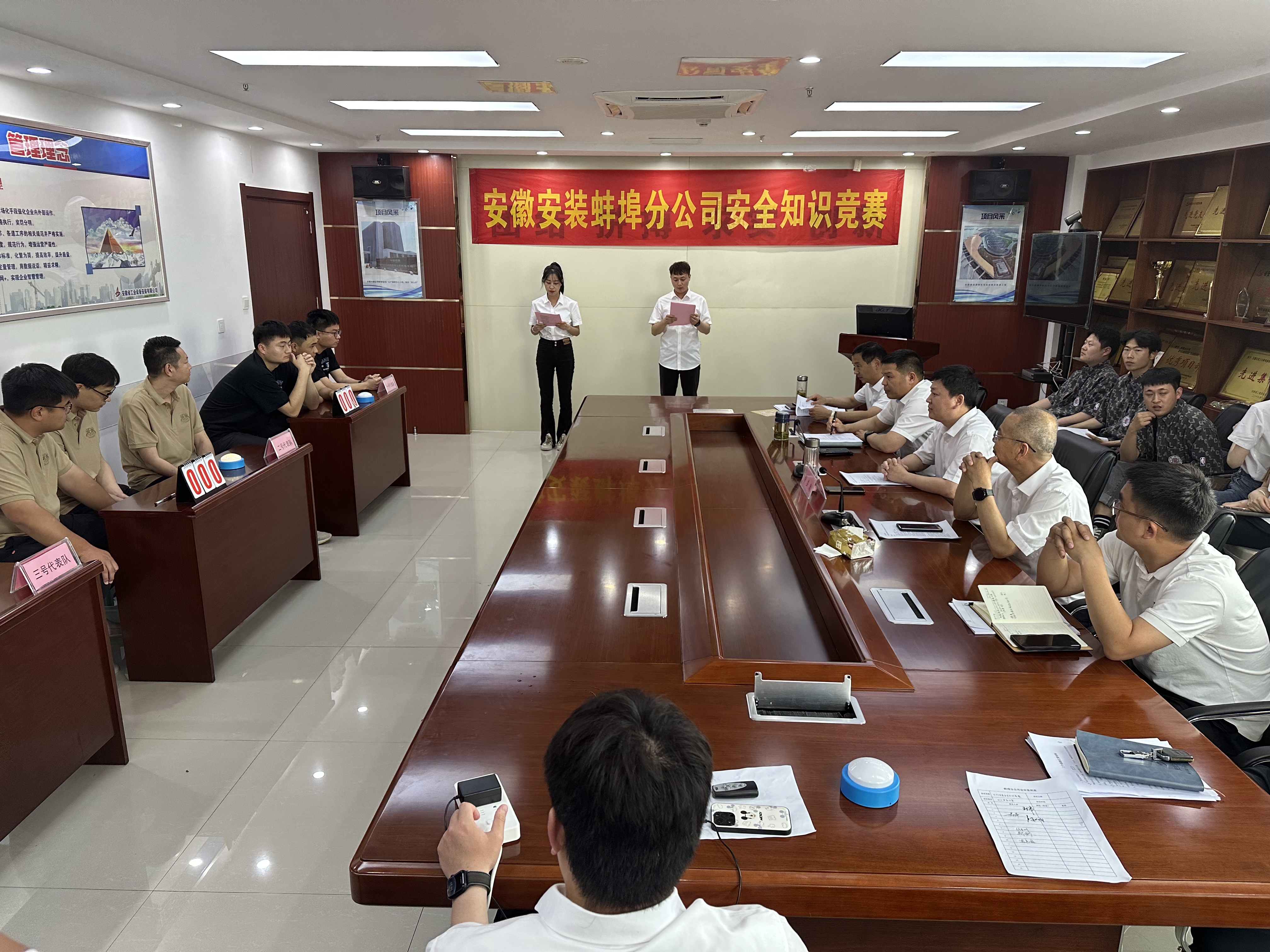 為提升蚌埠分公司安全管理水平,增強全員安全意識,規范安全生產,消除安全隱患和事故苗頭,圍繞“人人講安全、個個會應急”主題,6月9日下午,蚌埠分公司工會、安全管理部聯合舉辦蚌埠分公司第三屆安全知識競賽,分公司領導班子、機關全體員工、各項目代表參加活動。