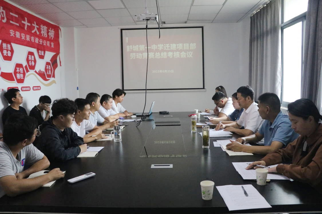 6月25日,市政分公司黨支部書記胡迎東、副經(jīng)理張漢軍赴舒城一中遷建工程項(xiàng)目部開展項(xiàng)目勞動(dòng)競(jìng)賽考核工作。項(xiàng)目部全體管理人員及勞務(wù)班組代表參加。