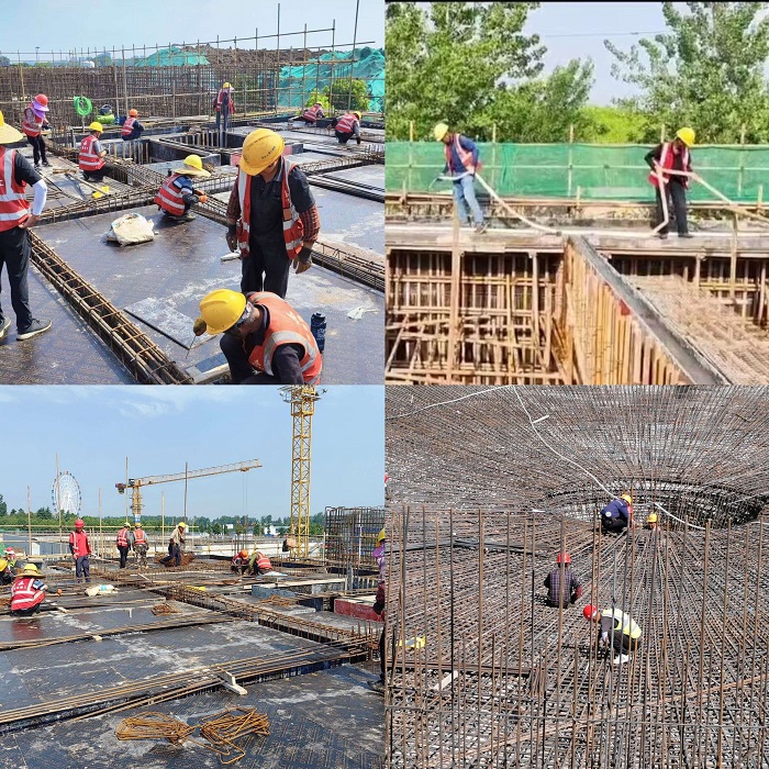 面對工期緊、任務重、壓力大,現場困難重重的實際情況,項目部多次召開專題會議,統一思想,倒排施工計劃,并積極開展勞動競賽。為確保競賽目標實現,項目部領導班子實行分工包保制,堅持靠前指揮,嚴控各個施工節點,同時,項目經理對項目部成員也做了精細化分工調整,劃分區域、責任到人;對施工班組一條龍服務,一站式解決。針對重難點問題做到急速反饋、急速解決,及時處理現場各類問題,確保“各司其責、高效快捷、風險可控”。在搶抓工程進度的同時,項目部還嚴抓現場安全質量管理。在常態化做好日常工作同時,相繼開展了安全警示教育、觸電事故安全演練、砌筑、抹灰技能大賽等活動,并積極申報QC成果,其中《提高池壁與筏板連接處混凝土一次性成型率》QC榮獲省級二等獎,多措并舉加快推進了項目建設。