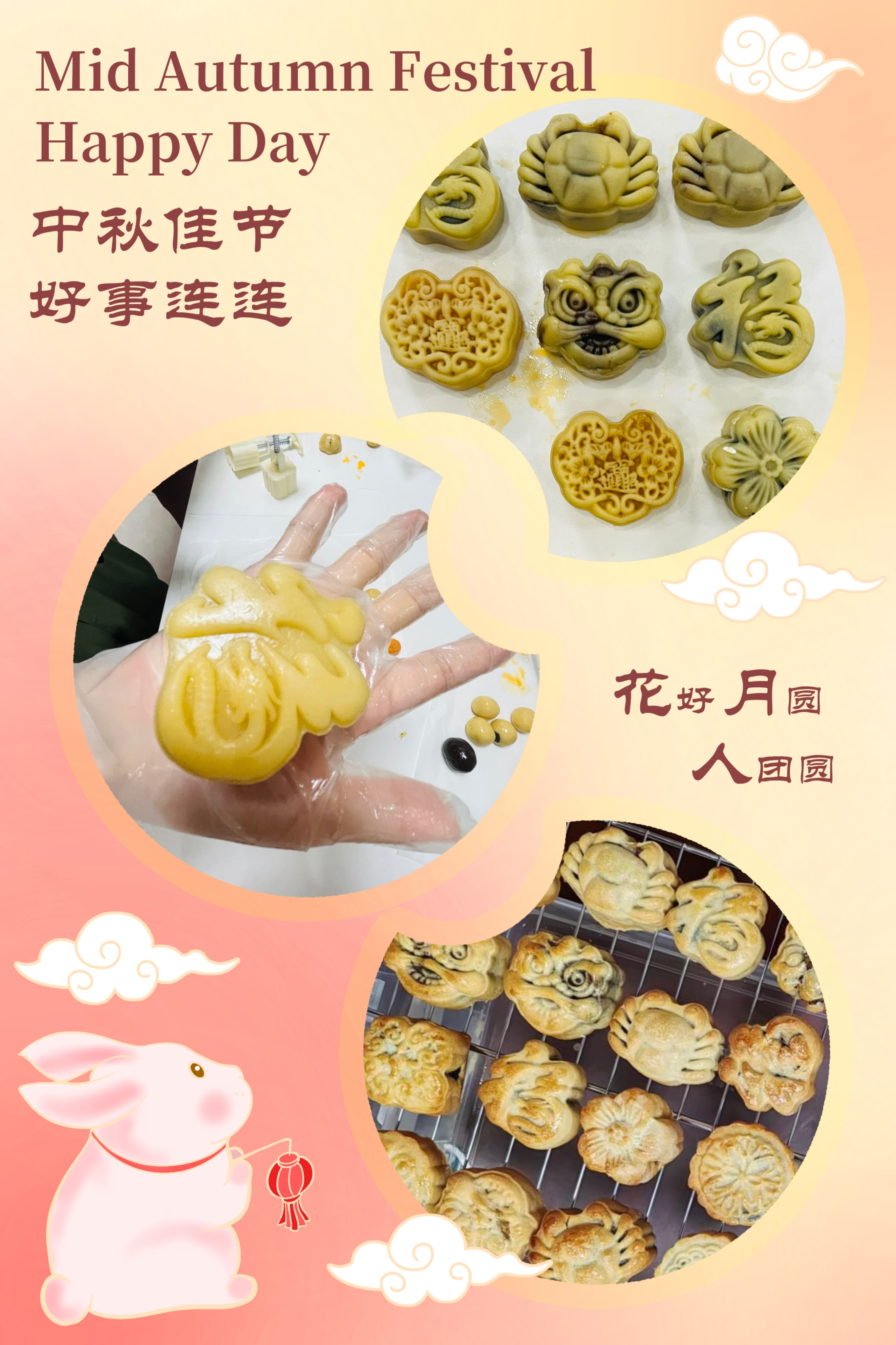 在活動現場,面點老師為大家簡單介紹了月餅的起源、種類和特點,隨后重點介紹了餅皮、餡料、模具等制作材料的用量和制作方式。在聽完講解后,大家紛紛躍躍欲試,一邊探討著月餅的制作方法,一邊互相傳遞豆沙、鳳梨、山楂等制作月餅的食材。揉面、搟皮、加餡料、包月餅、放入模具按壓成型,一套動作行云流水,忙得不亦樂乎。在輕松愉快的氛圍中,一個個色澤鮮艷、小巧玲瓏、造型各異的月餅包好了呈現在每個人的手中,經過精心烤制后,一盤盤美味的月餅在大家的歡聲笑語中出爐了。一口咬下去,軟糯的冰皮,香甜的豆沙,讓人回味無窮。大家吃著自己親手包的月餅,甜在口中,更甜在心里,把包好的月餅帶回家,將甜蜜與家人一起分享。