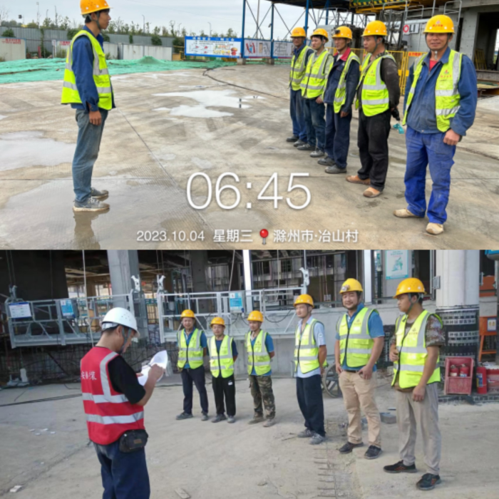 桃花科創項目、滁州天長項目在節假日期間,在崗施工作業人員,用自己的實際行動表達著對工作的熱愛,他們堅守崗位,堅持每日晨會開展電梯安裝知識培訓,強化安全防范意識,力求“安全第一”,保障安全與質量,全力確保項目的安全平穩運行。