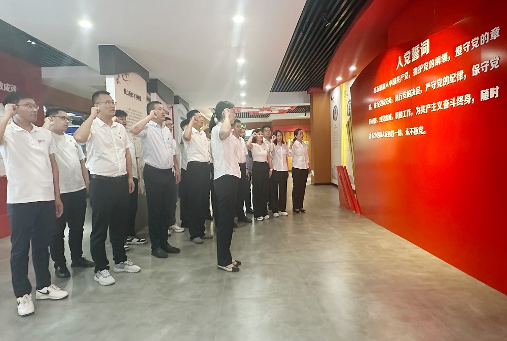 活動期間,分公司黨支部書記、副經理程茂麗帶領支部全體黨員集體重溫入黨誓詞。全體黨員面向黨旗舉起右拳,用錚錚誓言宣誓不忘初心使命為黨的事業奮斗的決心。