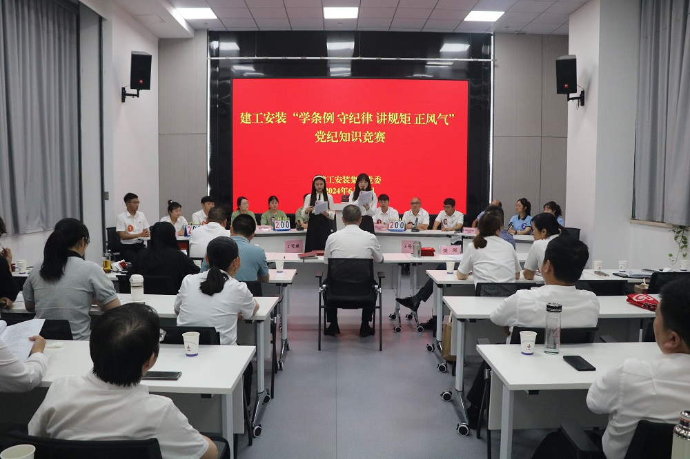 6月27日下午,建工安裝集團(tuán)舉辦“學(xué)條例 守紀(jì)律 講規(guī)矩 正風(fēng)氣”黨紀(jì)知識競賽。公司黨委委員、紀(jì)委書記李楊,黨委委員、副總經(jīng)理董雙武,黨委委員、副總經(jīng)理樊剛出席活動,各黨支部書記、機關(guān)部門負(fù)責(zé)人以及參賽選手等40余人參加活動。