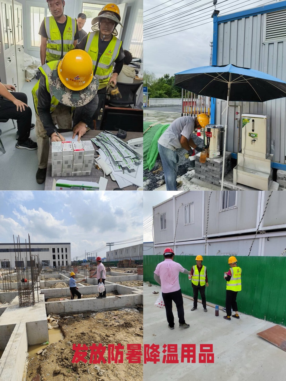 為應對高溫天氣,項目部多措并舉,每日供應冰水,加量供應防暑降溫物資并合理調整作息時間,從而保障施工人員在高溫天氣作業安全,在這炎炎烈日下給工人師傅們送去一絲清涼。