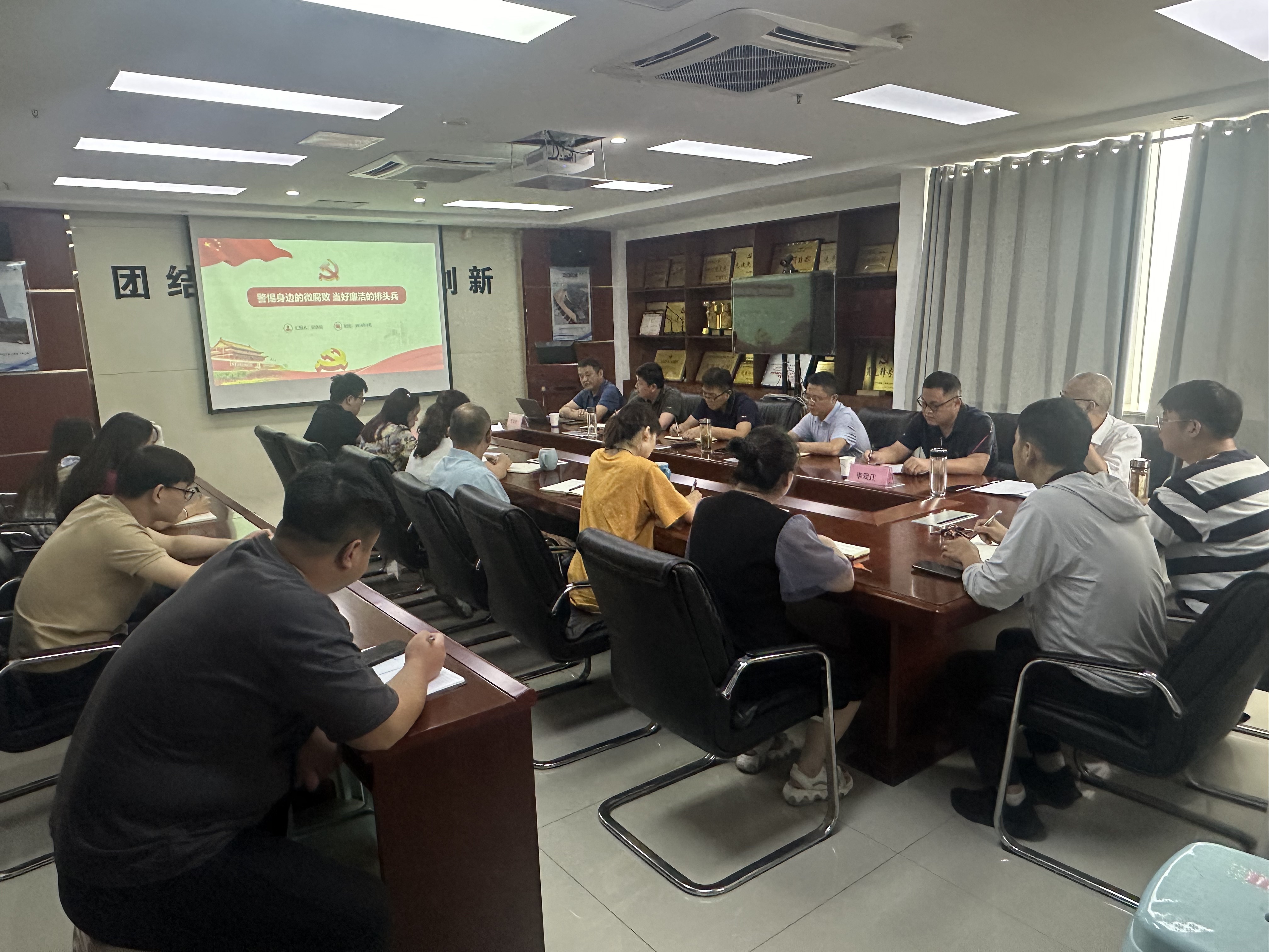 7月18下午,建工安裝安慶分公司黨支部書記史崇松赴蚌埠分公司開展黨支部書記交叉上黨課交流活動,蚌埠分公司班子成員、機關全體黨員、入黨積極分子、項目經理代表及團員青年代表參加此次黨課活動。