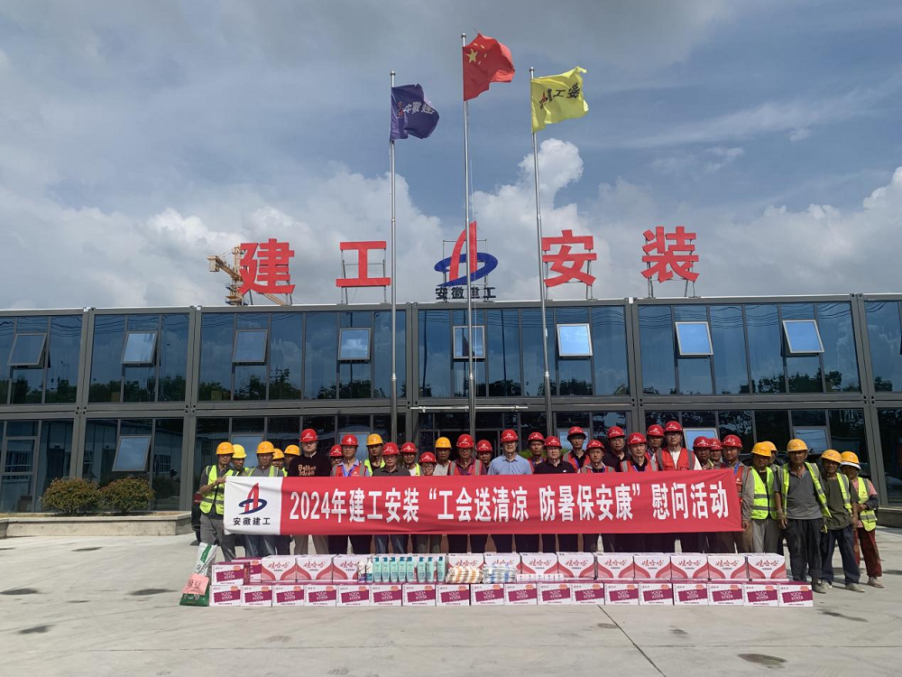 7月16—26日,建工安裝集團組織開展“工會送清涼 防暑保安康”慰問活動,此次送清涼慰問活動先后來到安慶石化新增鐵路接卸純苯設施項目、花崗智能制造產業園EPC項目電梯采購與安裝工程、合肥經開區臨湖智能制造產業園及基礎設施配套項目安裝工程施工專業分包工程、安徽深巖醫藥化工科技有限公司醫藥中間體及新材料項目廠區單體工程、阜南縣第一小學(東校區)項目、烏蘇市南苑新城小區住宅樓建設項目,給廣大一線職工送去白糖、綠豆、礦泉水、花露水、藿香正氣、十滴水等防暑降溫物品,將工會組織的關心關愛傳遞給項目一線職工,為夏季高溫安全生產和職工身體健康提供保障。