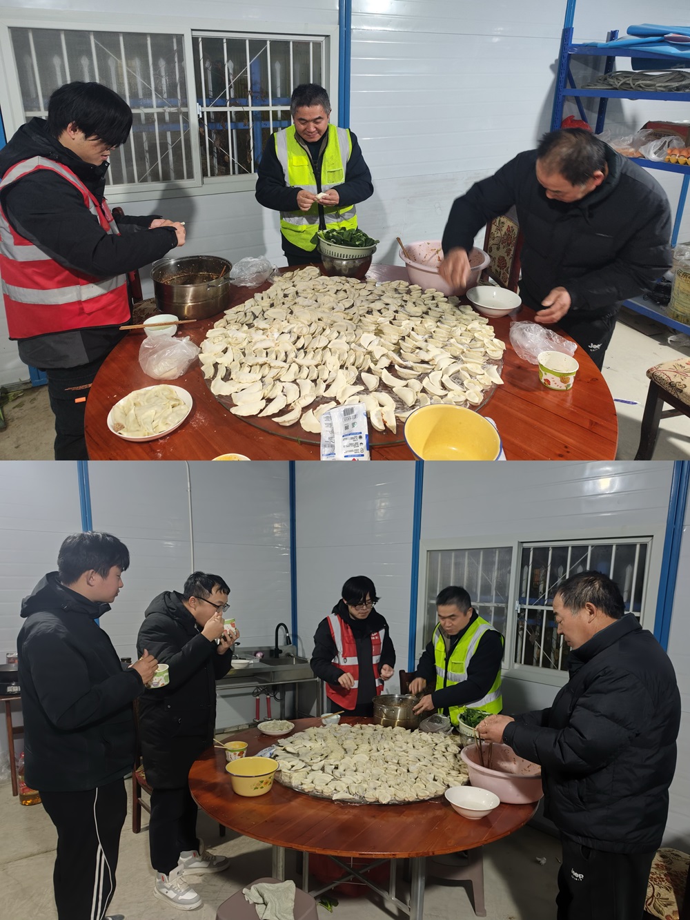 在新橋智能制造產(chǎn)業(yè)園一階段一標(biāo)項(xiàng)目機(jī)電安裝工程項(xiàng)目部,一場(chǎng)同樣歡樂的包餃子活動(dòng)也在如火如荼地進(jìn)行著。項(xiàng)目部的員工們齊聚一堂,大家分工合作,有的負(fù)責(zé)調(diào)餡,確保餡料的口味恰到好處;有的負(fù)責(zé)擺放餃子,將包好的餃子整齊地排列在托盤上。雖然大家都很忙碌,但空氣中洋溢著歡聲笑語(yǔ)。大家一邊包餃子,一邊交流著項(xiàng)目上的工作進(jìn)展和生活趣事,氛圍融洽和諧。