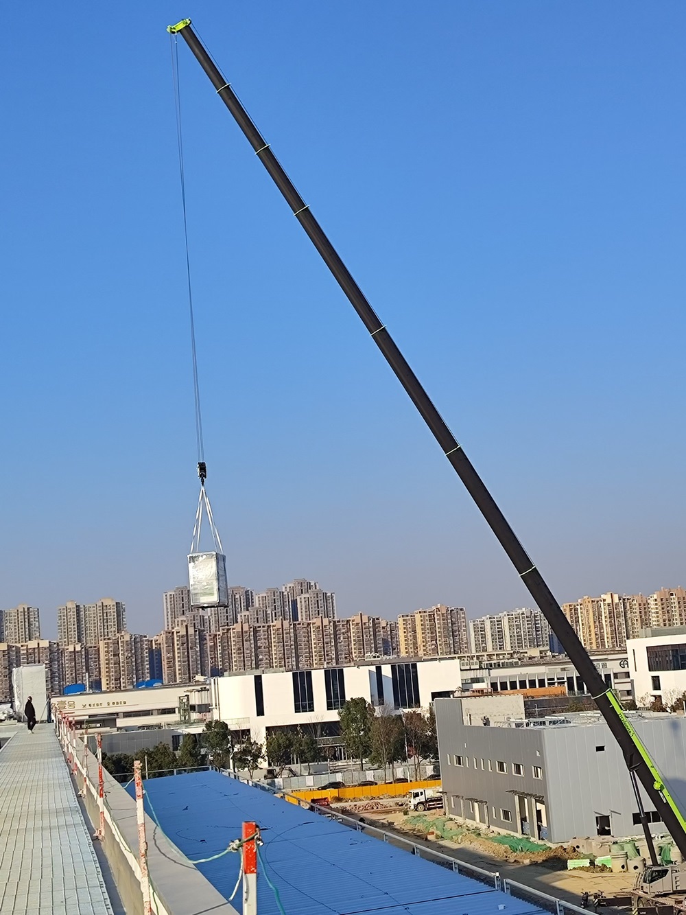 近日,車間一大型設備組合式空調陸續(xù)到貨,項目部有序開展組合式空調現(xiàn)場吊裝工作。為了確保吊裝工作的順利進行,項目部多次召開方案實施推進會,根據設備到場計劃,結合天氣情況、進場路線、現(xiàn)場站位、部件起吊等反復優(yōu)化吊裝方案。梳理工作清單、制定工作任務、責任落實到人。同時采用現(xiàn)場拉設警戒區(qū)域、現(xiàn)場作業(yè)交底、試吊、全程看護作業(yè)等方式,保障現(xiàn)場吊裝作業(yè)安全進行。
