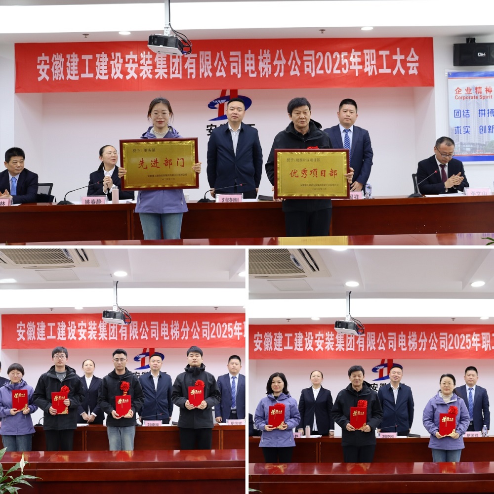 會上,宣貫了建工集團三屆二次職代會暨2025年工作會議和建工安裝十七屆五次職代會精神,與分公司市場開發部及所屬各片區項目部簽訂了《2025年度經濟責任書》,表彰了電梯分公司2024年度先進集體和先進個人。