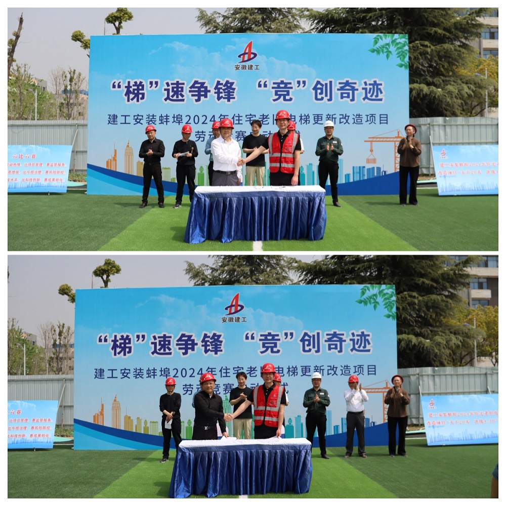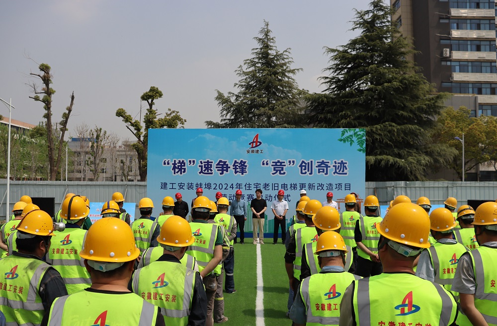 為貫徹集團(tuán)和公司兩級(jí)職代會(huì)精神,落實(shí)公司勞動(dòng)競(jìng)賽活動(dòng)相關(guān)工作要求,加快工程建設(shè)進(jìn)度,不斷提高項(xiàng)目管理和建設(shè)水平,4月10日,建工安裝電梯分公司蚌埠2024年住宅老舊電梯更新改造項(xiàng)目舉行了以“梯”速爭(zhēng)鋒 “競(jìng)”創(chuàng)奇跡為主題的勞動(dòng)競(jìng)賽啟動(dòng)儀式,正式吹響了“大干20天,決戰(zhàn)4.30”勞動(dòng)競(jìng)賽的奮進(jìn)號(hào)角。蚌埠市城市投資控股有限公司代表、分公司班子成員、項(xiàng)目部管理人員、各參建單位代表及作業(yè)人員共130余人參加活動(dòng)。