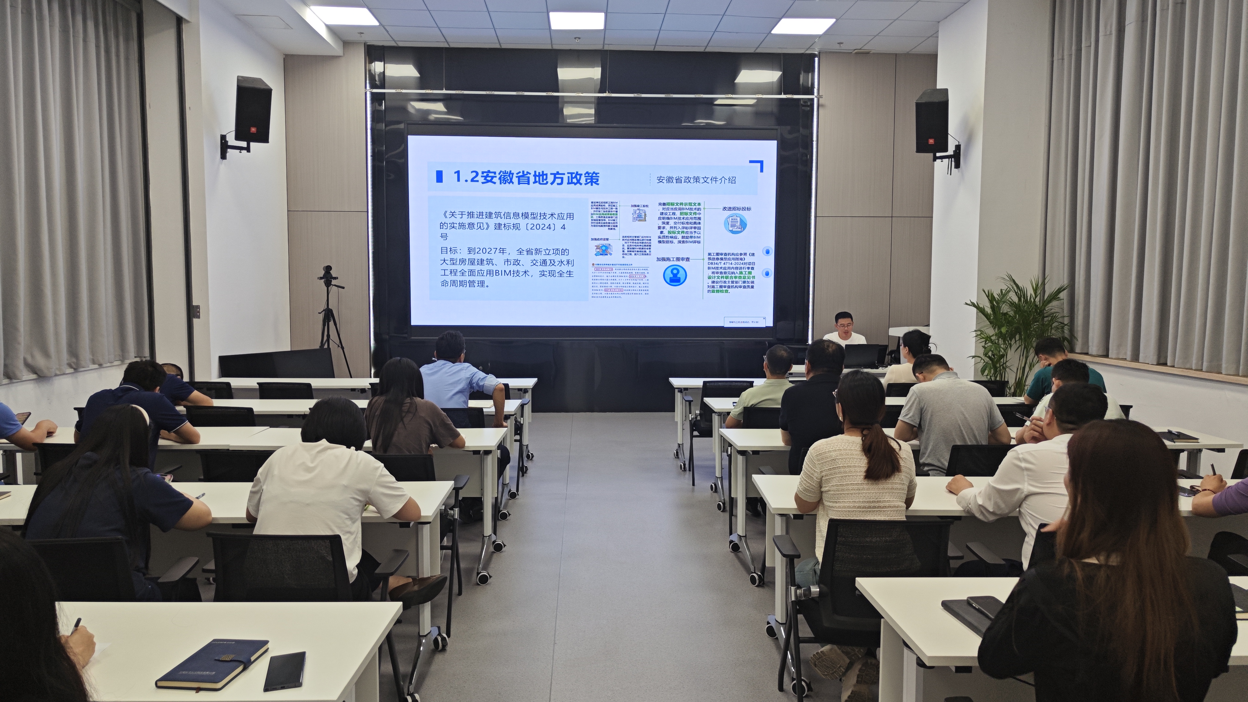 主講人圍繞BIM技術(shù)展開系統(tǒng)講解。梳理國家及安徽省BIM政策要點(diǎn),深度闡釋BIM技術(shù)概念與原理,著重解析其應(yīng)用價(jià)值與優(yōu)勢。隨后詳細(xì)說明BIM工作流程以及核心技術(shù)應(yīng)用點(diǎn),并借助三個(gè)視頻短片直觀呈現(xiàn)實(shí)際應(yīng)用場景,助力參訓(xùn)人員深化對BIM技術(shù)的理解。