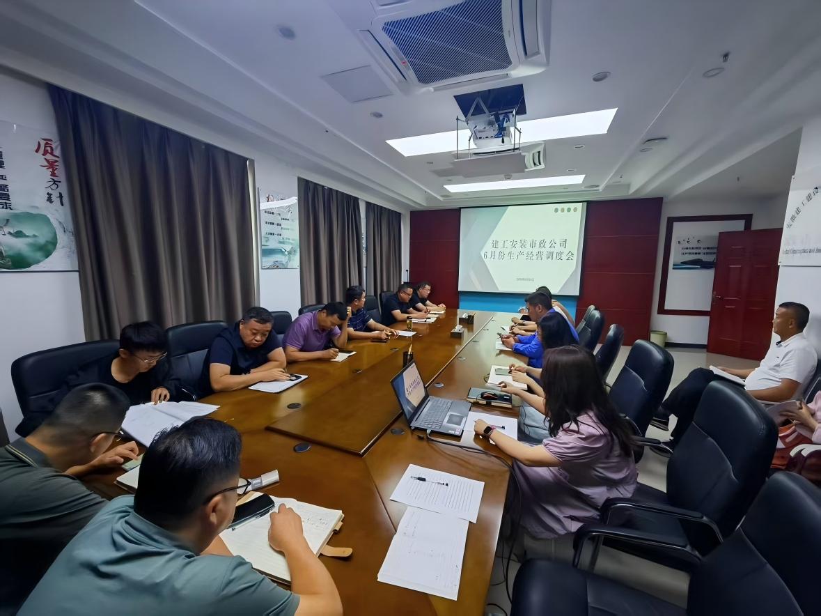 6月23日,建工安裝市政公司召開6月份生產經營工作調度會,全面梳理市政公司上半年經營狀況,部署下半年重點任務。會議由黨支部書記、經理史崇松主持,市政公司領導班子成員、各項目經理、機關部門負責人等參加會議。