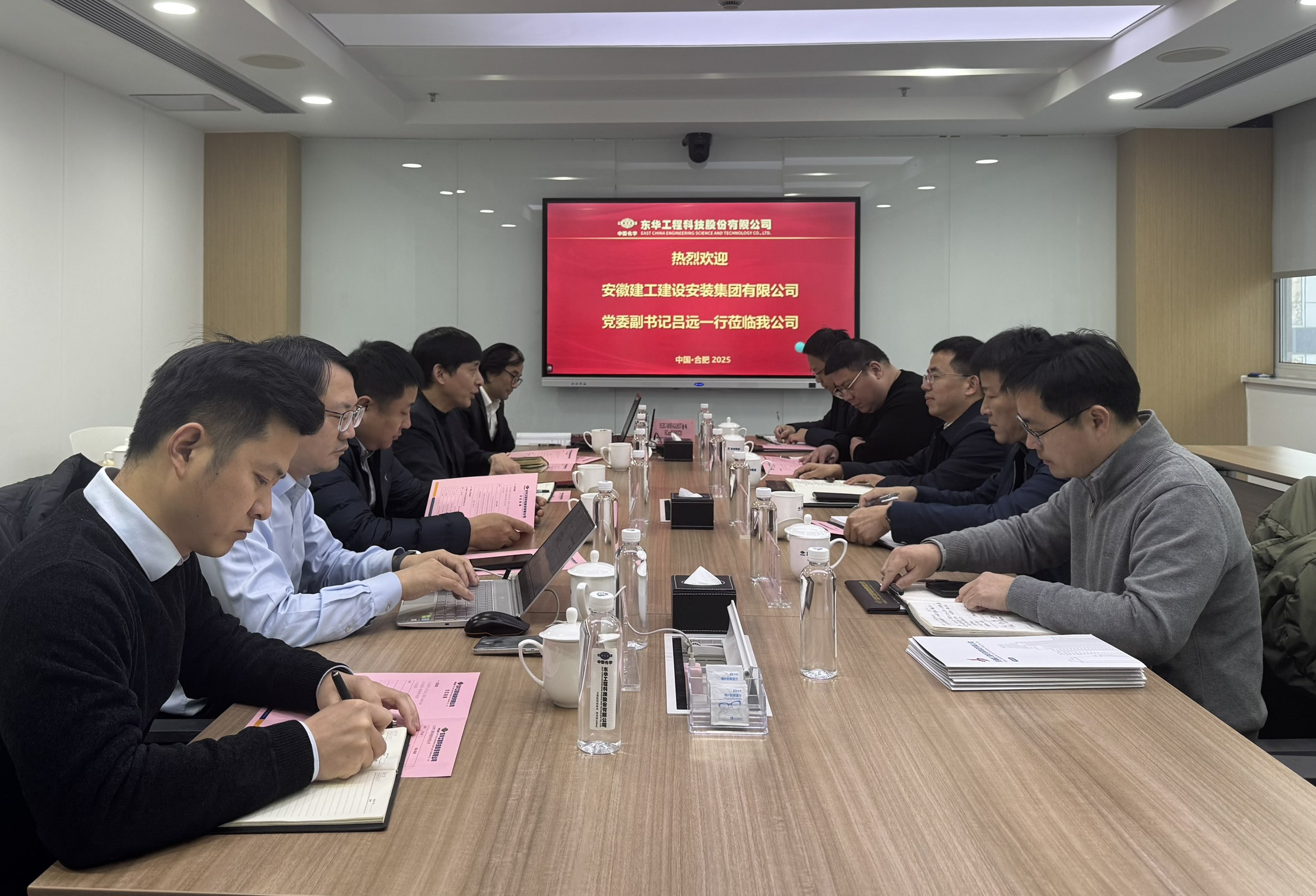 12月25日下午,建工安裝黨委副書記呂遠率隊拜訪東華工程科技股份有限公司,東華工程科技股份有限公司基礎設施事業(yè)部總經(jīng)理孫愛國熱情接待并進行工作會談。